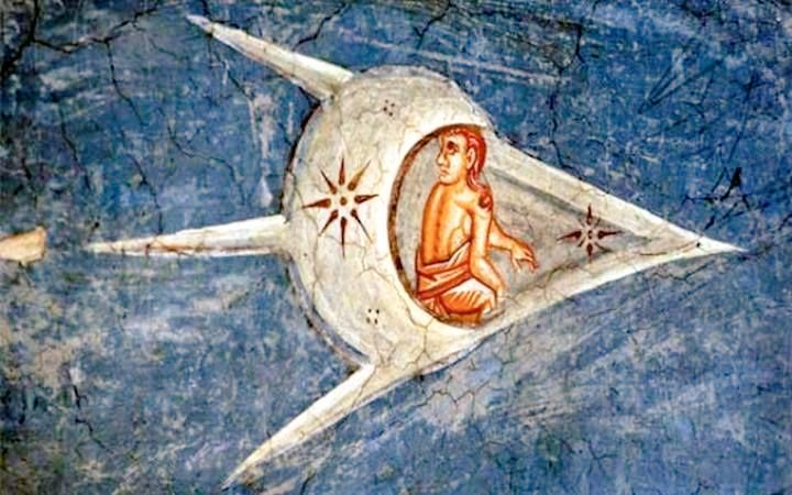 A painting of a flying craft from 1350.